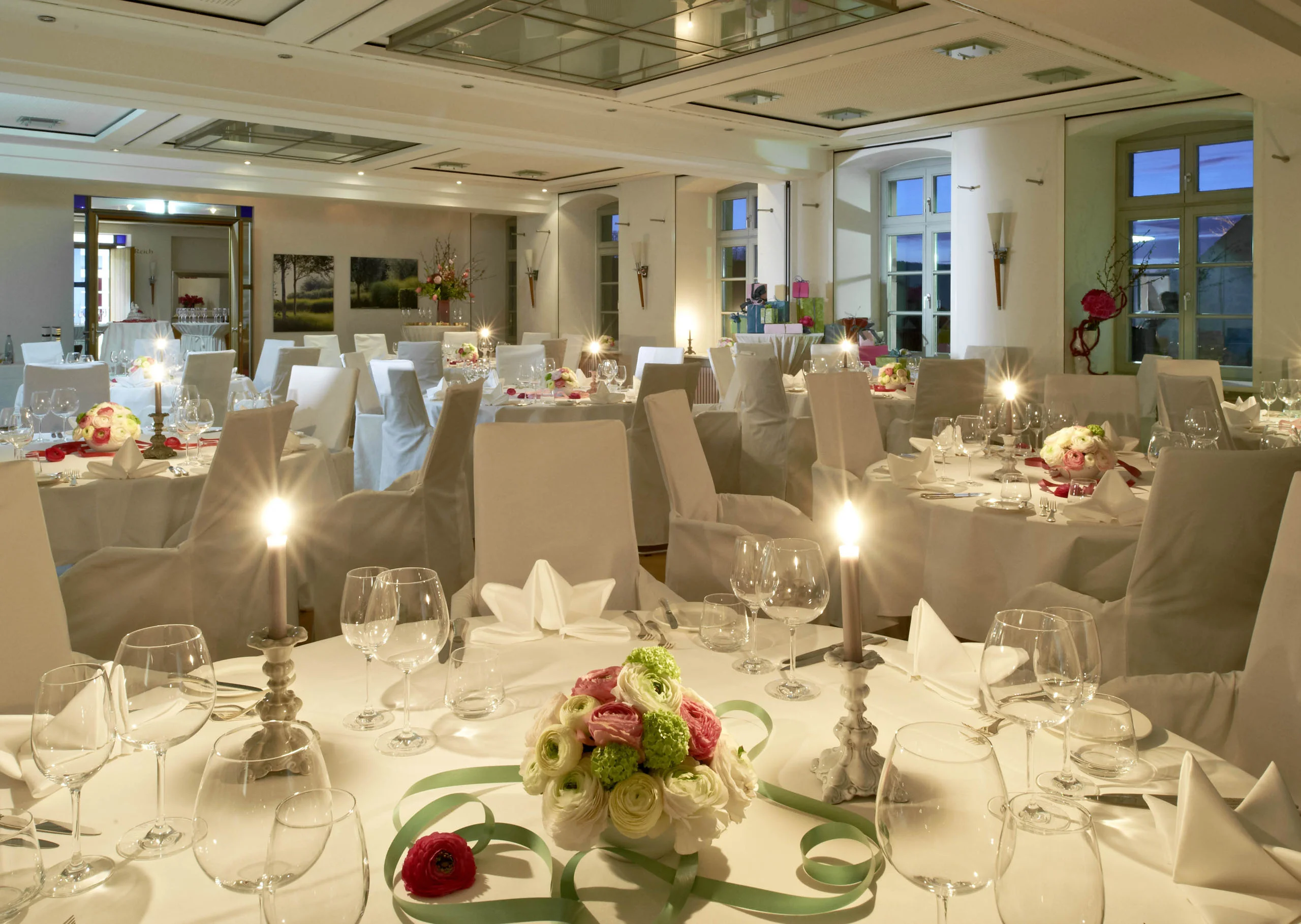 Wenn sich die Türen öffnen und Ihr Blick den hellen Saal HochZeit erfasst, breiten sich vor Ihnen 125 Quadratmeter aus, auf einen Raum, dessen reduzierte Architektur und zurückhaltende Eleganz beeindrucken. Im Vorraum – dem idealen Platz für den ersten Empfang mit prickelndem Sekt – erklingt das Anstoßen der Gläser als Auftakt zu Ihrem unvergesslichen Tag. Hier ist Platz für Präsente, hier entspinnen sich erste Unterhaltungen, hier wächst die Erwartung auf das Kommende.