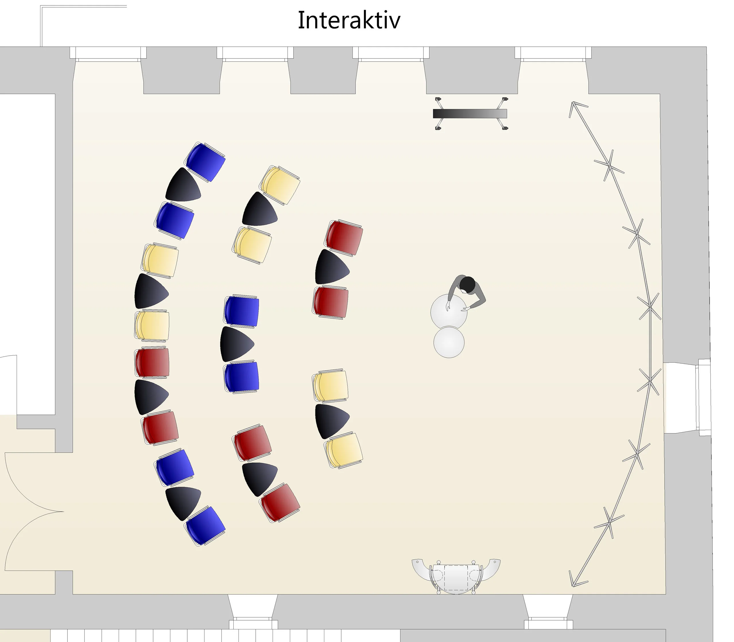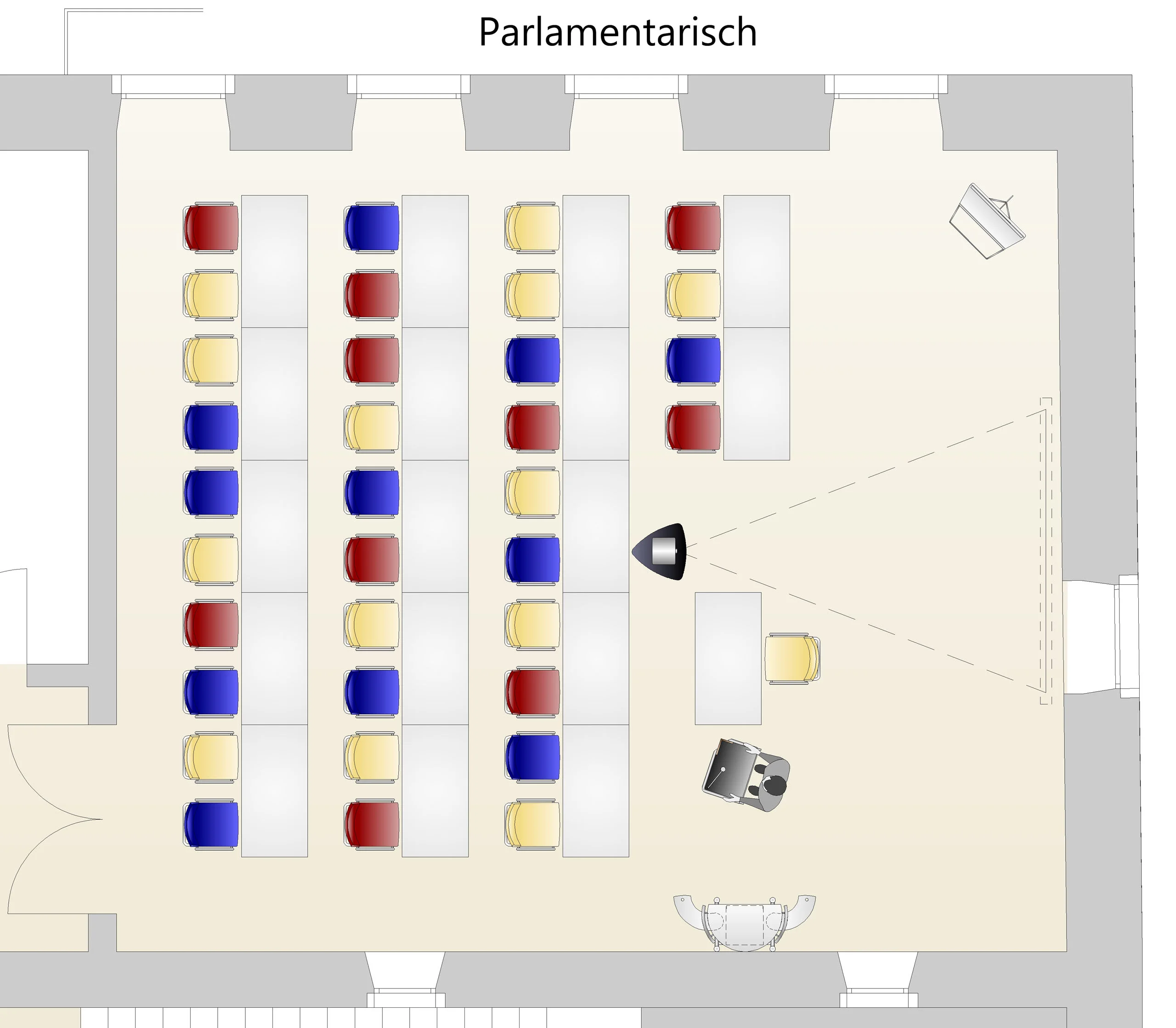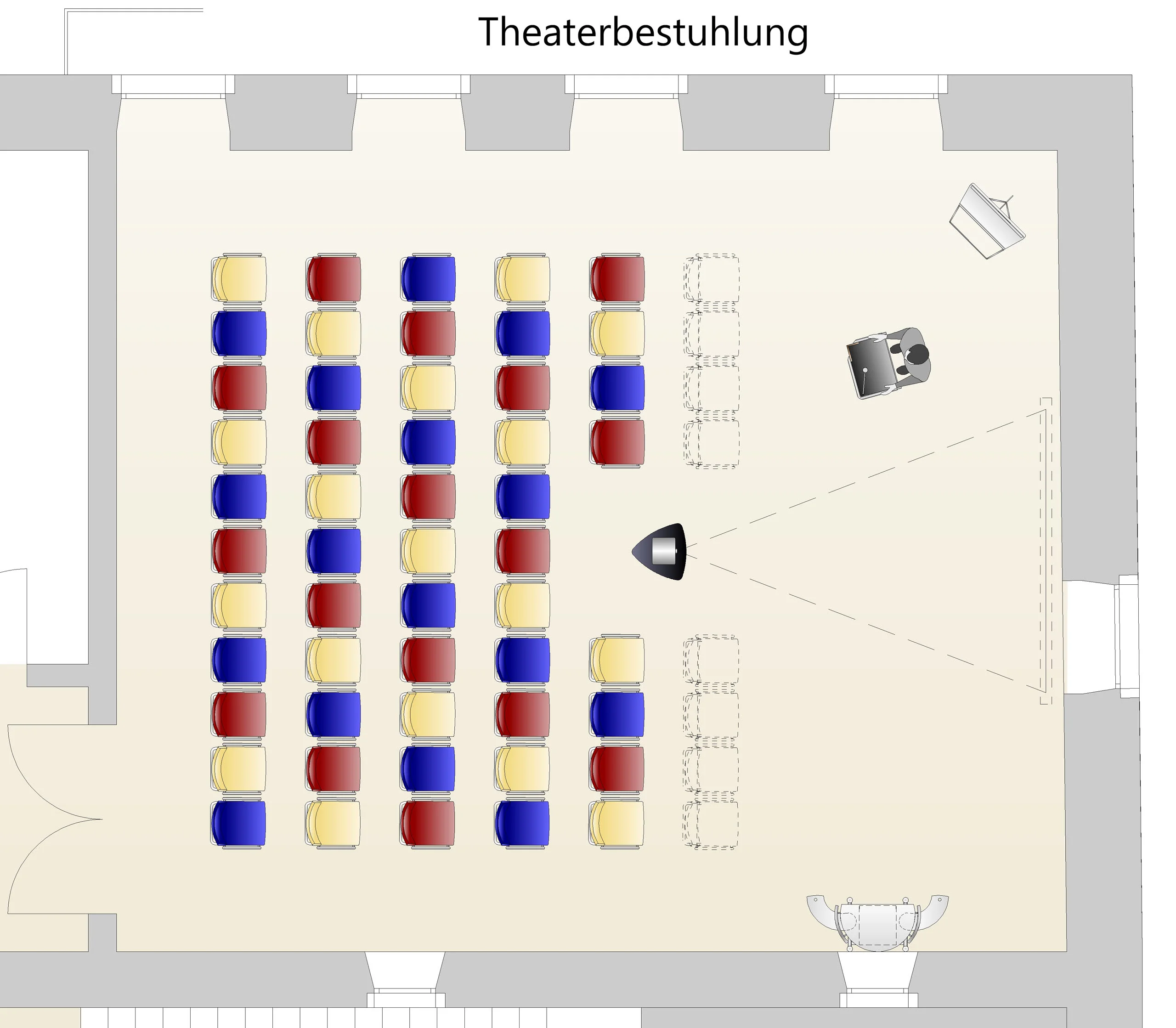 - Max. Kapazität: 65 Personen (Theaterbestuhlung)