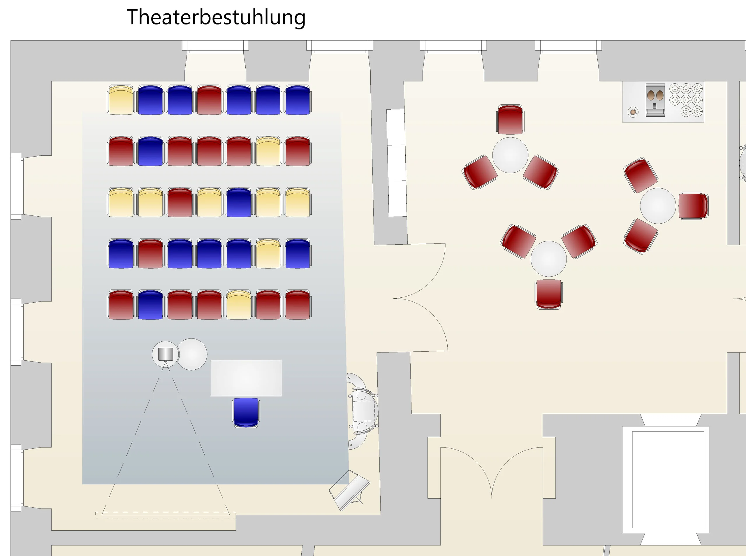 - Max. Kapazität: 40 Personen (Theaterbestuhlung)