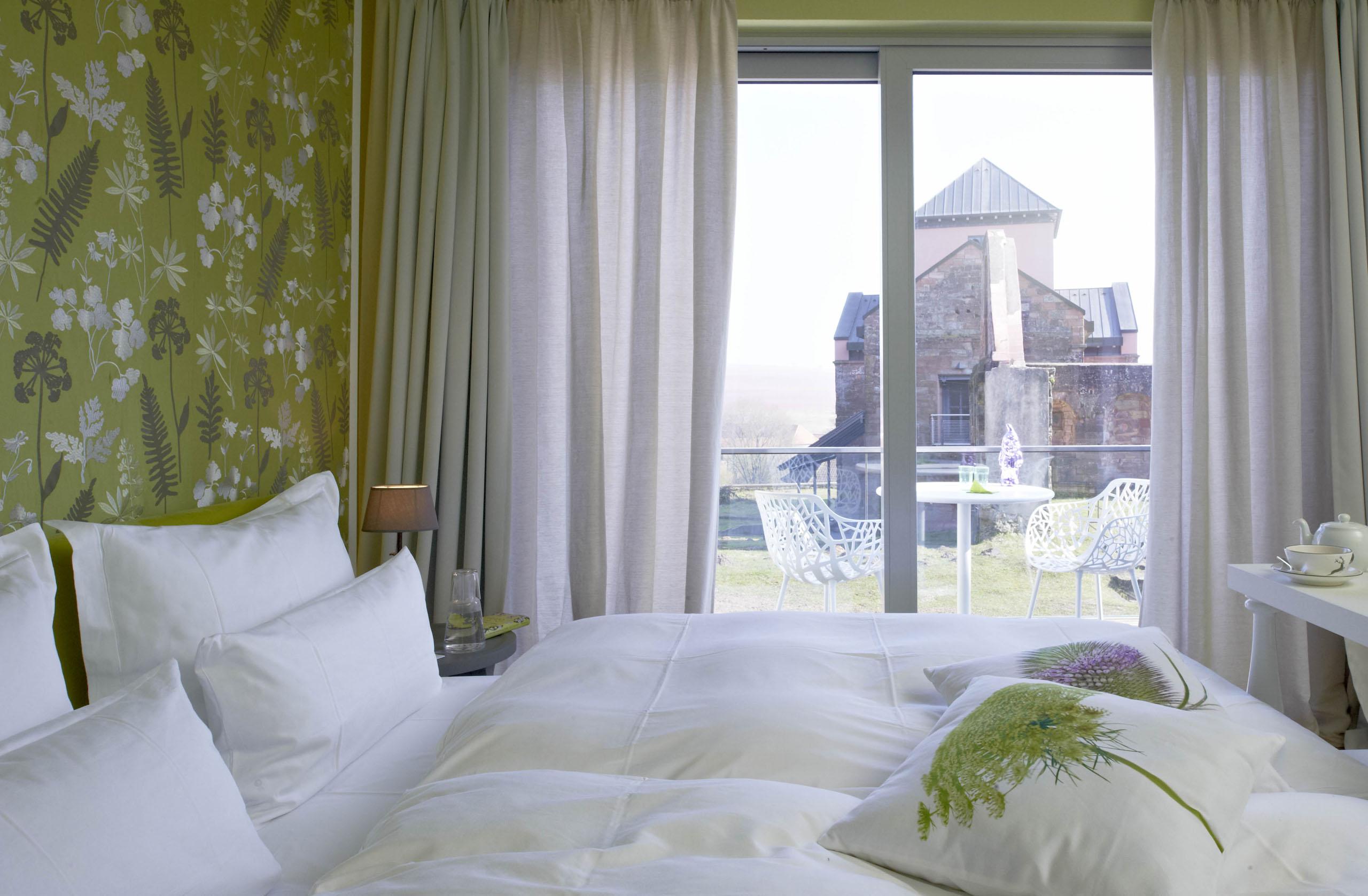 Wenn Sie Blumen und Pflanzen mögen, werden Sie die Gartensuite lieben. Frische Farben prägen den Raum. Das große Fenster öffnet den Blick ins Grüne. In Zusammenarbeit mit den Paten ist ein Raum entstanden, in dem Sie aufblühen.