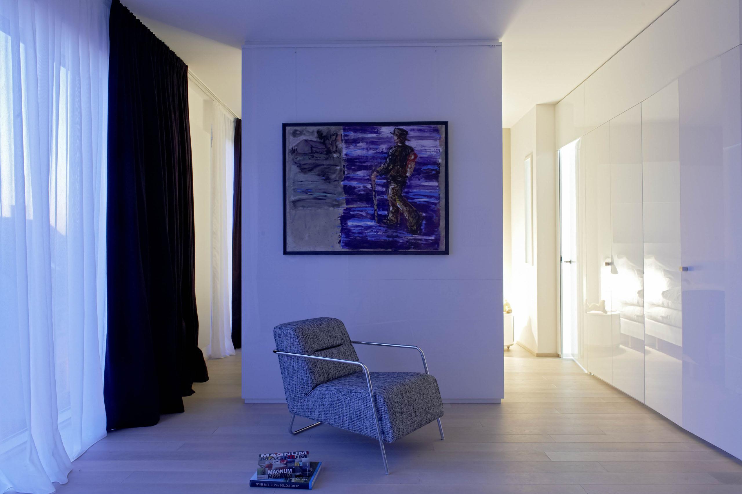 Das ist die Frage. Wer diesen Raum betritt, wird zum Flaneur, zur Betrachterin, zum stillen Gesprächspartner im Wechselspiel von Form, Farbe und Bedeutung. An den Wänden hängen handverlesene Originale unterschiedlicher Künstler, kuratiert von der Patin. Auch die Möbel sind Teil dieser Ausstellung, sind sie doch charakterstarke Einzelstücke. Interessant arrangiert sind sie vielleicht sogar kleine intellektuelle Provokationen.