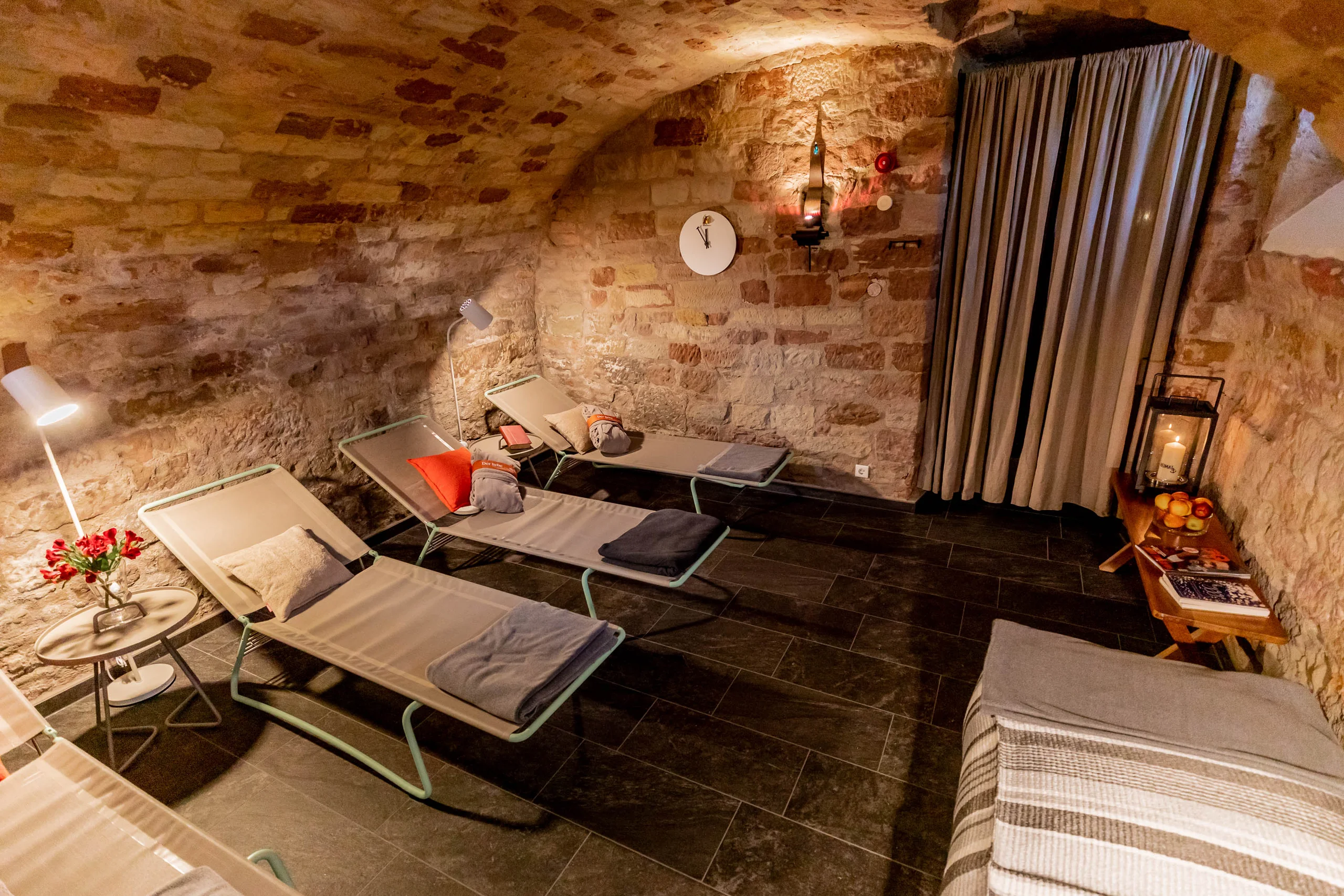 Mens sana in corpore sano – ein gesunder Geist in einem gesunden Körper. Diese zeitlose lateinische Weisheit verkörpert, was Sie im Kloster Hornbach erwartet. Unter dem Nikolausturm öffnet der Wellnessbereich BadeLust seine Pforten für Sie. Zwischen der intensiven Wärme der Sauna und dem sanften Nebel im Dampfbad lösen sich Ihre Verspannungen in nichts auf. In der Erlebnisdusche wartet ein Spiel aus Licht und Wasser, im kleinen Entspannungspool Erfrischung auf Sie. Erleben Sie Wellness im Kloster!
